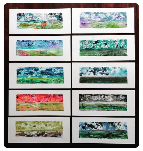 Monoprinten is een druktechniek waarbij op een gladde, niet-absorberende ondergrond een afbeelding met, in dit geval, waterverdunbare olieverf wordt gemaakt waarna de nog natte schildering op papier wordt afgedrukt. Anders dan bij andere druktechnieken kan met monoprint slechts één afdruk gemaakt worden.